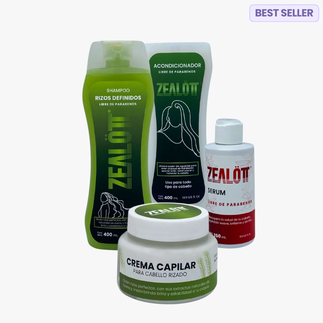 Kit Curly One Este Kit le dará un shot de vitalidad a tus rizos, este kit incluye la crema de rizos definidos Zealott, fortalece el cabello y aumenta la resistencia de la hebra, lo que previene las puntas abiertas y el frizz, también incluye para un cuidado en 360° el shampoo rizos definidos y el acondicionador dando como resultado, unos rizos de impacto. Descubre nuestros Kits One el cual incluye un Serum.